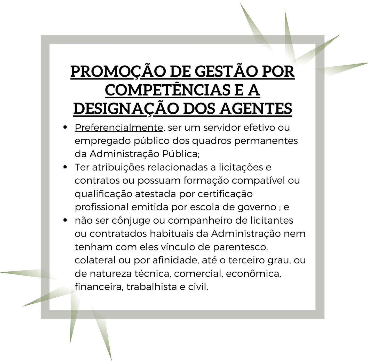 Com foco na gestão de competências, o legislador se refere à identificação dos critérios de aptidão técnica, ou seja, qualificação adequada e compatível com as funções essenciais à execução da Nova Lei de Licitações e Contratos, como se observa no art. 7º da LLC.