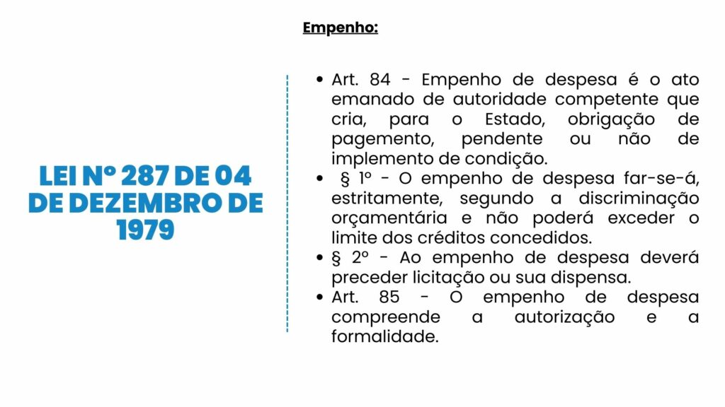 Além disso, a Lei nº 4.320/1964, estabelece Normas Gerais de Direito Financeiro, o Decreto nº 46.794 de 15 de outubro de 2019, dispõe sobre o sistema de contabilidade estadual.
