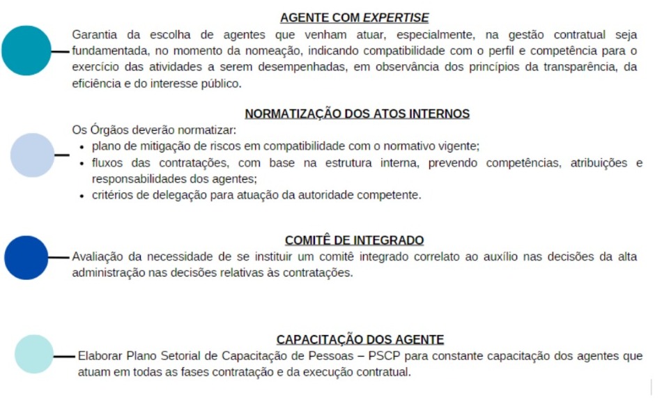 Em que pese não haver, no cenário atual, a determinação do entendimento por meio de Decreto, a gestão/execução contratual com base no dispositivo legal, já pode observar os 4 pilares que sustentam a Governança nas contratações públicas, e, consequentemente, o deságue na execução, são eles:
