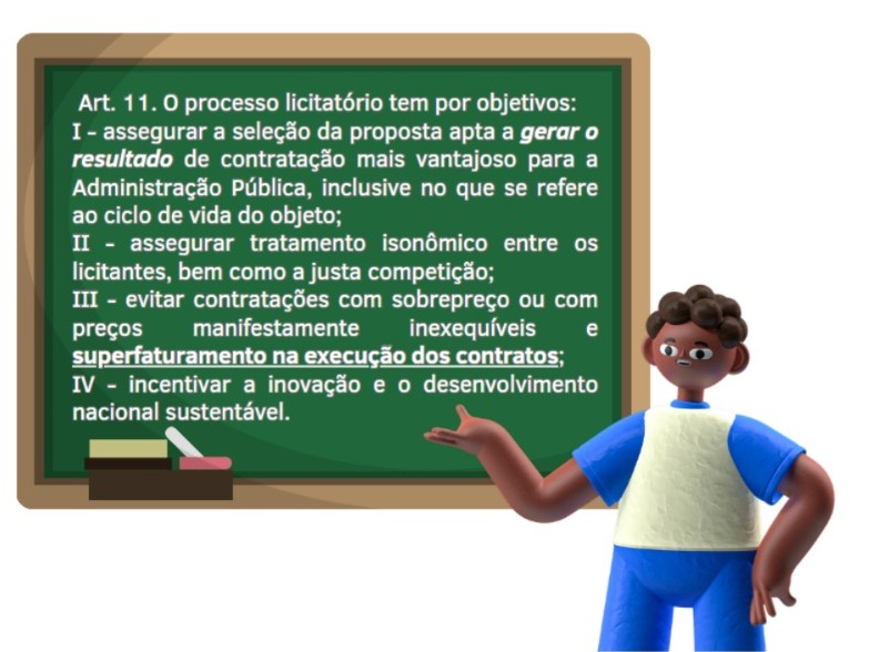 O art. 11 visa aclarar os objetivos a serem perseguidos pela NLLC, o que torna imprescindível o conhecimento destes por parte dos agentes da execução, tendo em vista a determinação da participação do gestor na fase de planejamento e execução.