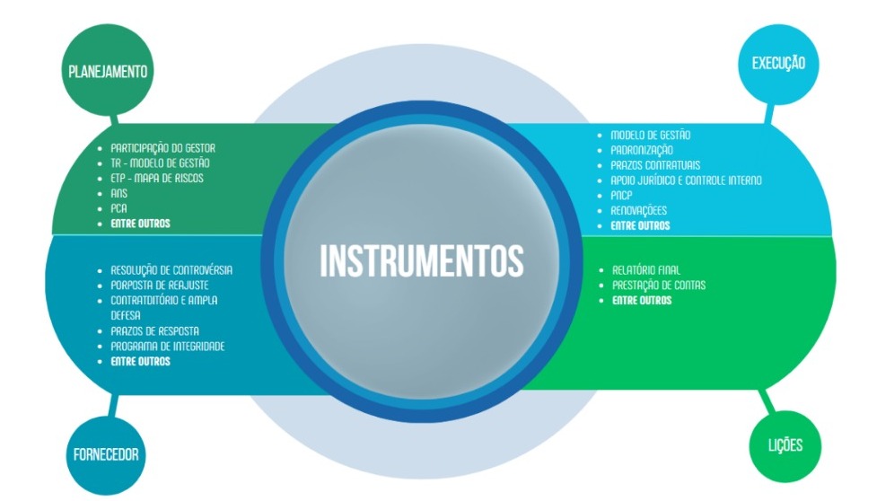 A figura abaixo ilustra alguns instrumentos de governança trazidos pela Nova Lei de Licitações que podem ser utilizados para uma melhor acompanhamento da execução contratual, onde a Gestão por competência orienta todas as fases do ciclo de contratação, delineando a participação do Gestor do contrato tanto nas etapas de Planejamento e Execução Contratual.